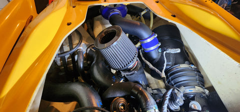 The rear 102mm [4"] air intake system feeds your supercharged engine [suits both Seadoo & Yamaha PWC] with an unrestricted flow of air, improving combustion, helping both acceleration and RPM.